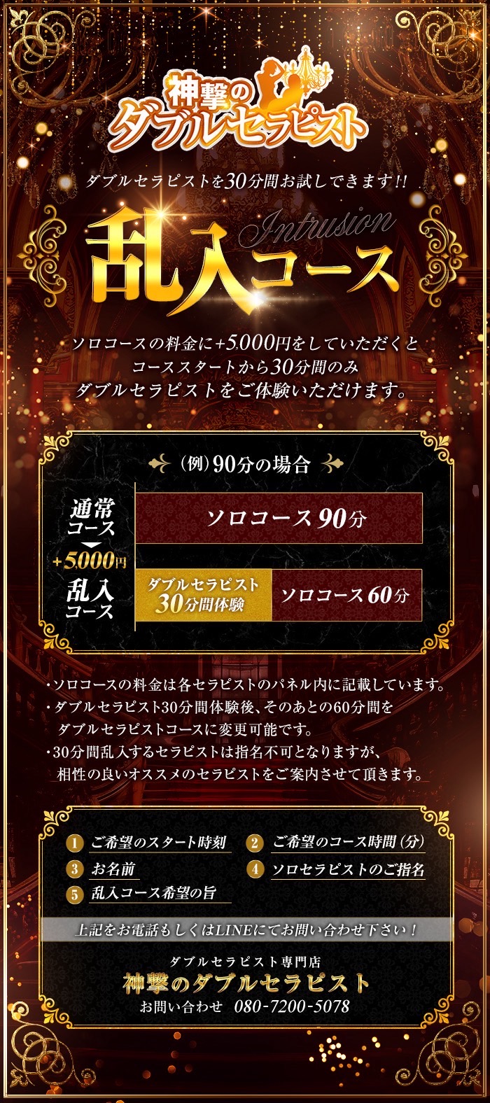 独自開発ダブルセラピスト技 “5点” を含めた施術